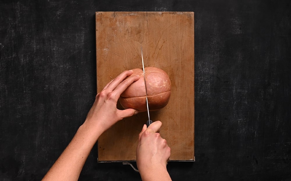 Mortadella Bologna IGP, una fetta spessa circa 1 cm