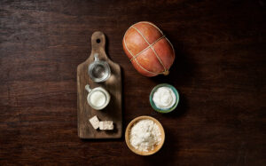 Sciogliete il lievito nel latte. Mettete la farina in una ciotola e unite lo strutto e il latte, iniziando a mescolare, aggiungendo l’acqua e il sale fino ad ottenere un impasto consistente.