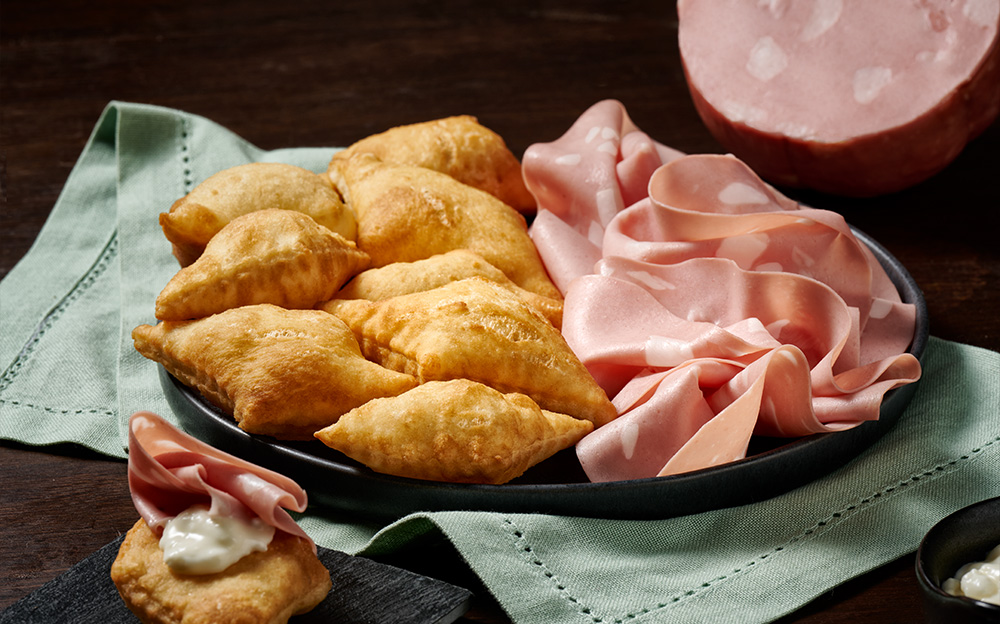 Con una rotella tagliate delle losanghe di circa 6 cm di lato e friggetele nell’olio bollente, cuocendole su entrambi i lati per pochi minuti. Servitele accompagnate da Mortadella Bologna IGP e squacquerone.