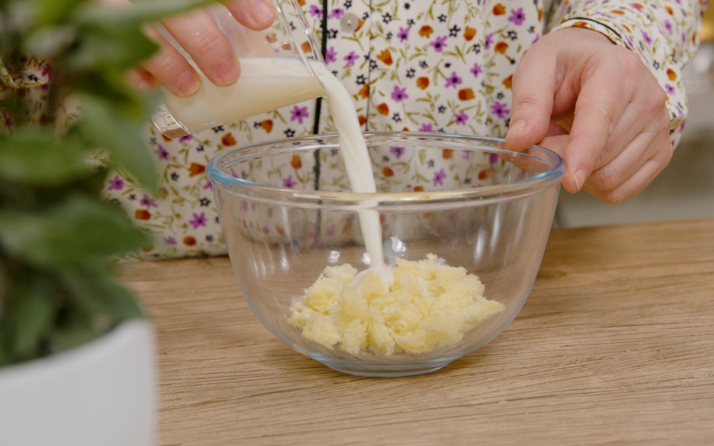 Sbriciola la mollica di pane e mettila in una ciotola; ricoprila poi con il latte e lasciala rinvenire ed ammorbidire. Intanto, metti sul fuoco una pentola con abbondante acqua; quando avrà raggiunto il bollore, prendi i gherigli di noci e immergili per 5 minuti nell’acqua. Trascorso il tempo indicato, scolali e lasciali raffreddare. Trasferisci i gherigli nella ciotola di un cutter e aggiungi tutti gli altri ingredienti: la panna, l’aglio, il formaggio grattugiato, il pane, l’olio e il sale. Ora aziona il robot e frulla il tutto fino ad ottenere una crema più o meno liscia a seconda dei tuoi gusti.