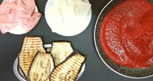 Procedere con strato di pomodoro, melanzana e Mortadella Bologna IGP con mozzarella fino a terminare gli ingredienti.