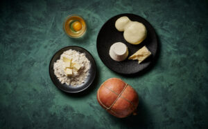 Sulla spianatoia lavorate velocemente la farina col burro, fino ad ottenere un composto sbriciolato. Aggiungete l’uovo, il sale e l’acqua fredda ed impastate per ottenere un panetto omogeneo. Mettetelo a riposare in frigo per mezz’ora. In una ciotola unite gli ingredienti per il ripieno, salate e pepate a piacere.