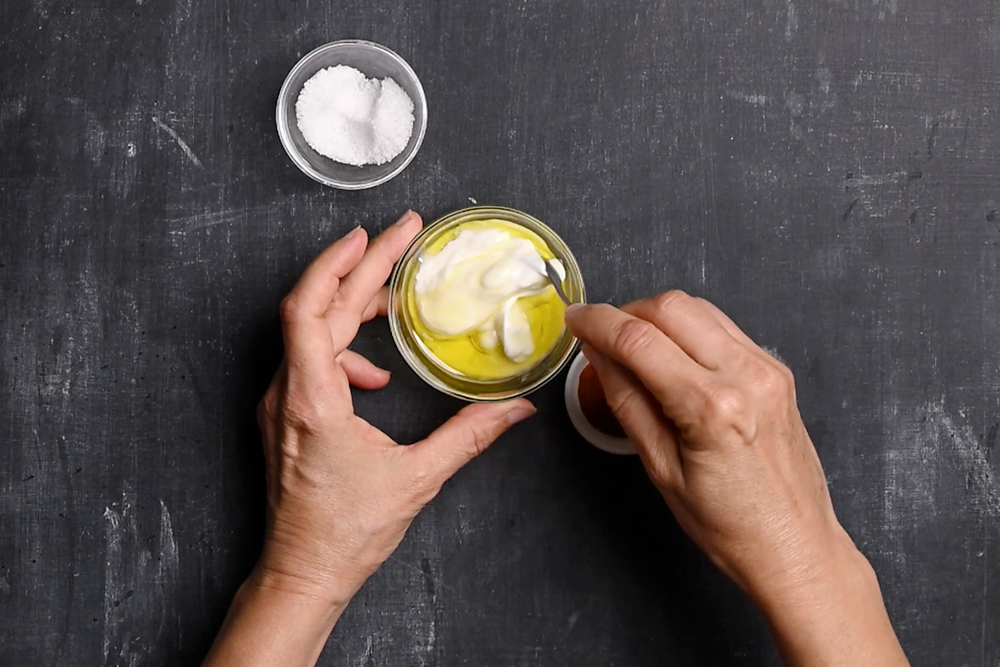 Prepara la salsa di yogurt con olio, sale e paprica forte.